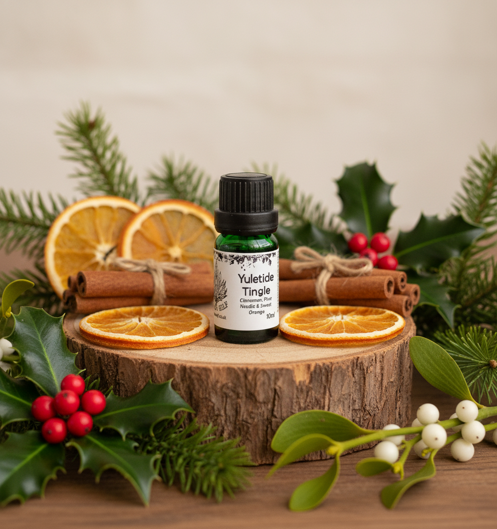Crafted for winterโs threshold, Yuletide Tingle is a sacred blend of cinnamon bark, pine needle, and sweet orange - each note a spell, each drop a shimmer between worlds.